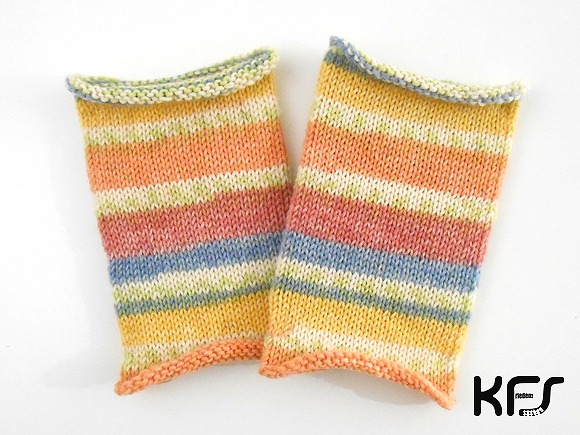 Opal毛糸を使用したメリヤス編みのリストウォーマーです。